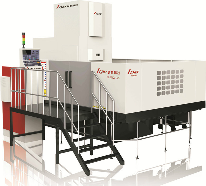 The machine possesses the function of cutter head lifting, the worktable adopt rolling bearing structure. The main motion is driven by AC frequency inverter motor, the radial feed achieved by columnar movement and driven by AC servo motor during cutting, because of the function of cutter head lifting, this kind of machine especially suitable for cutting deep hole gears with internal tooth, and enhance the efficiency of cutting duplex gear and the different depth of internal or external gear. Users can set up the cycles and radial feed of each cycle according to demand.